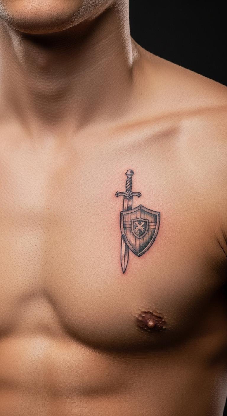 Sword and shield show protection. Go minimal for savings. Align properly. Sketch at home. This helps plan. Opt for quick work.