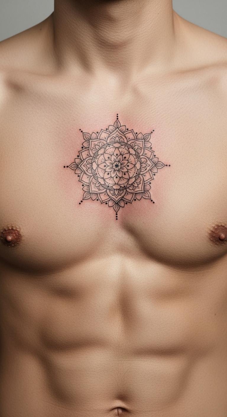 Mandala designs bring harmony with their circular patterns, perfect for a small chest spot. Choose a simple ring of shapes to keep it budget-friendly. Position it centrally for symmetry with your body. Draw a basic mandala on paper using a compass from home. This helps visualize without spending extra. Get ink in one color to cut costs. Break the process into steps: plan, sketch, then ink. After, protect it with a clean bandage from your first aid kit. Easy actions like this make maintenance straightforward.
