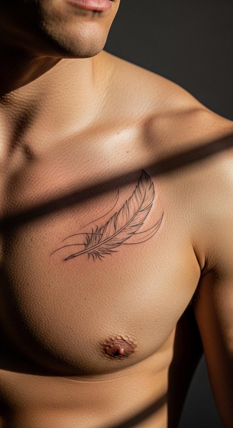 Feathers stand for freedom in a subtle chest design. Keep it to basic strokes for cost savings. Put it on the side for a natural flow. Draw feathers on paper to experiment first. This DIY approach helps avoid regrets. Opt for a quick session with one color. Maintain it with lotion you have on hand.