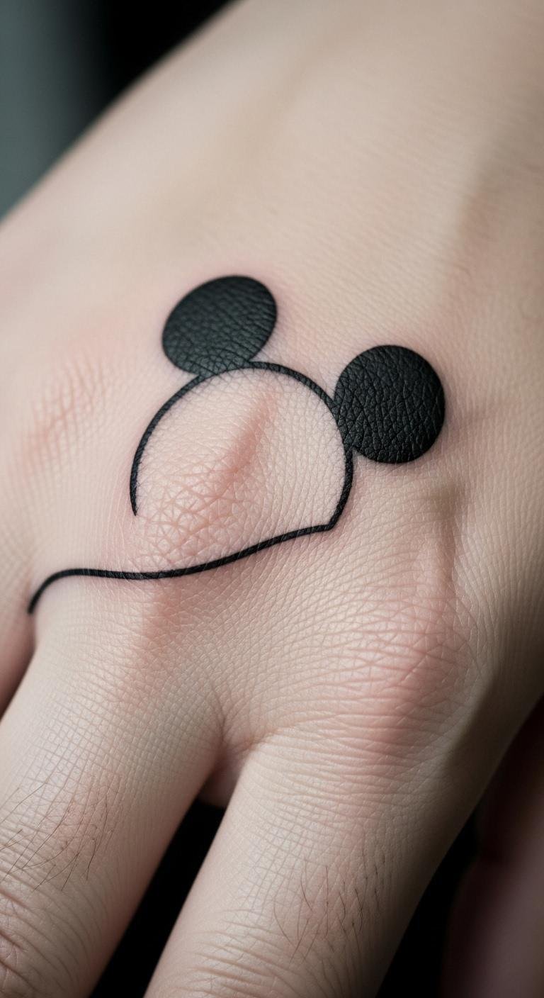 A hand tattoo with Mickey’s silhouette feels personal. It’s small and meaningful. Use your phone to snap ideas from mirrors. This way, you see it in action for free. For example, trace a shape on your hand with washable ink. Pick the palm side for subtlety. It symbolizes childhood fun. Search for cheap hand designs online. Keep it tiny to save money. You’ll love the constant reminder.