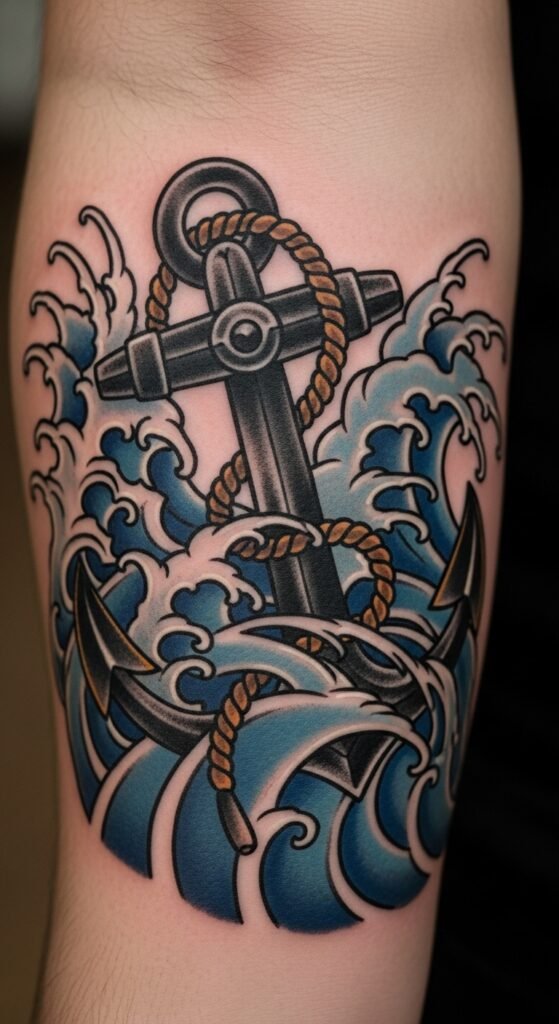 Anchor with waves means resilience. Ink on forearm. Draw waves first. Free tools help. Budget inks work. Hide or show as needed. Basic care suffices. Personalize easily.