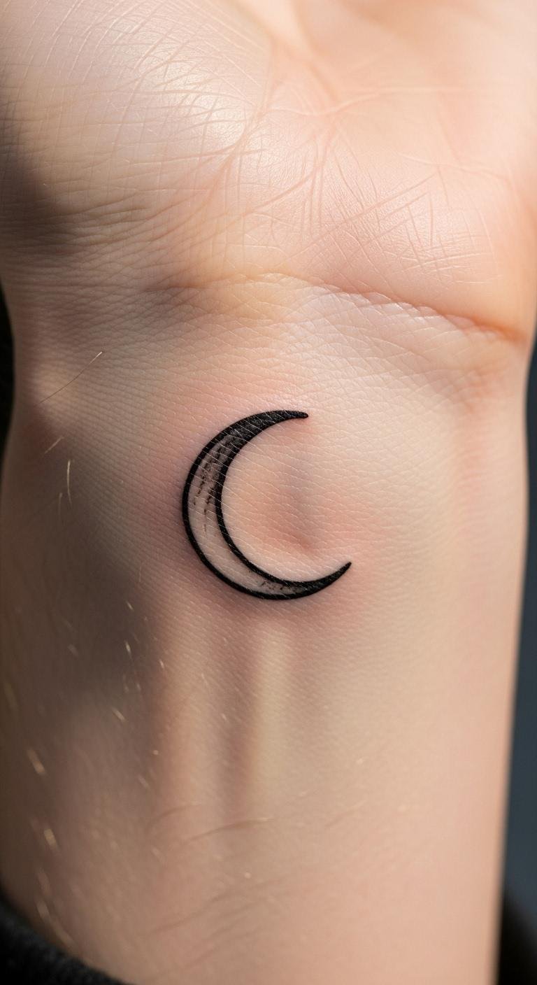 A tiny moon on your wrist is subtle and sweet. Draw a small curve on paper first. Keep it there for constant view. Black ink keeps it cheap, under $70. Use drawing apps for quick ideas. Add a dot for a star. Try it with sticker tattoos. Go to a nearby shop for fast service. This one’s easy to hide or show.