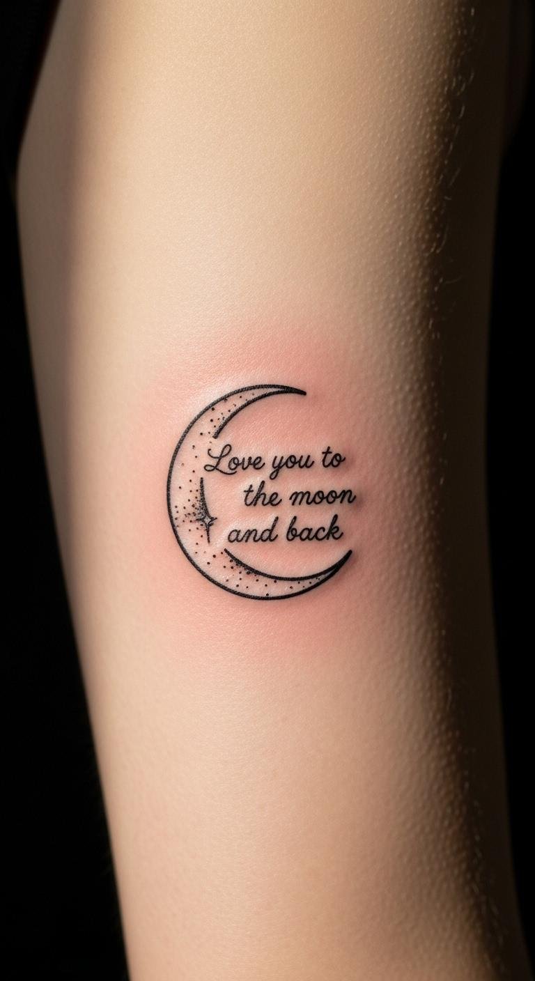 Incorporate a short quote with your moon. Write words next to the shape on paper. Position on your rib for privacy. Simple fonts keep costs down, around $130. Use word generators online. Choose meaningful phrases. Sketch it lightly first. Talk to local pros. This adds a personal message.