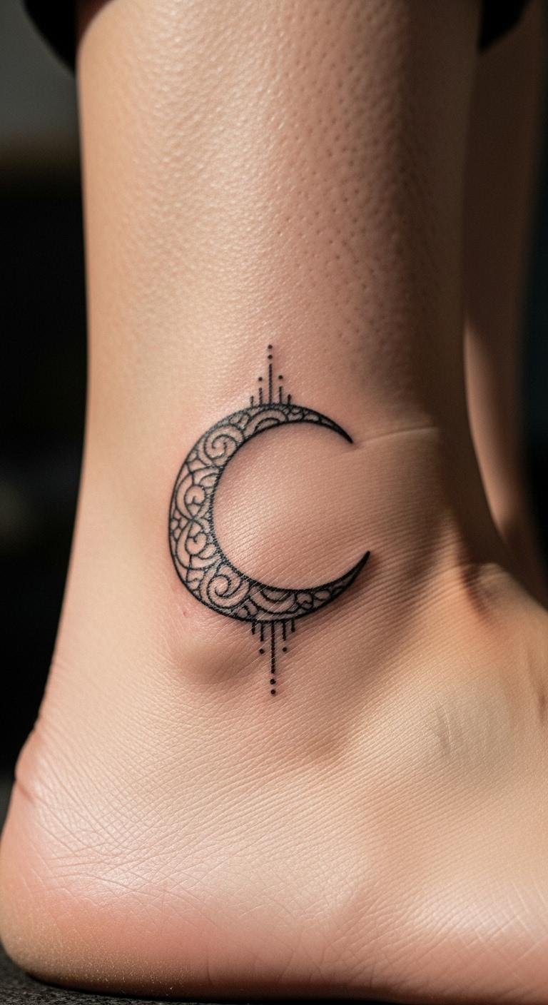A detailed crescent on your ankle feels dainty. Draw fine lines on paper. Ankle works for subtle wear. Ink stays basic for $90. Adapt from free sources. Include a small accent. Test with ankle bands. Choose quick sessions. This one’s versatile daily.
