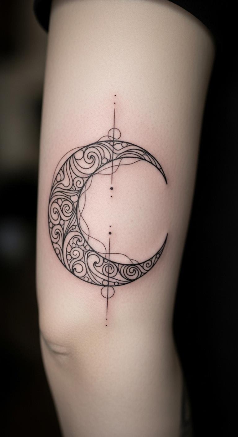 Go geometric for a sharp moon. Use shapes in your sketch. Calf fits well. Affordable at $100. Find geo templates. Add angles. Draw with rulers. Select precise artists. This modernizes the look.