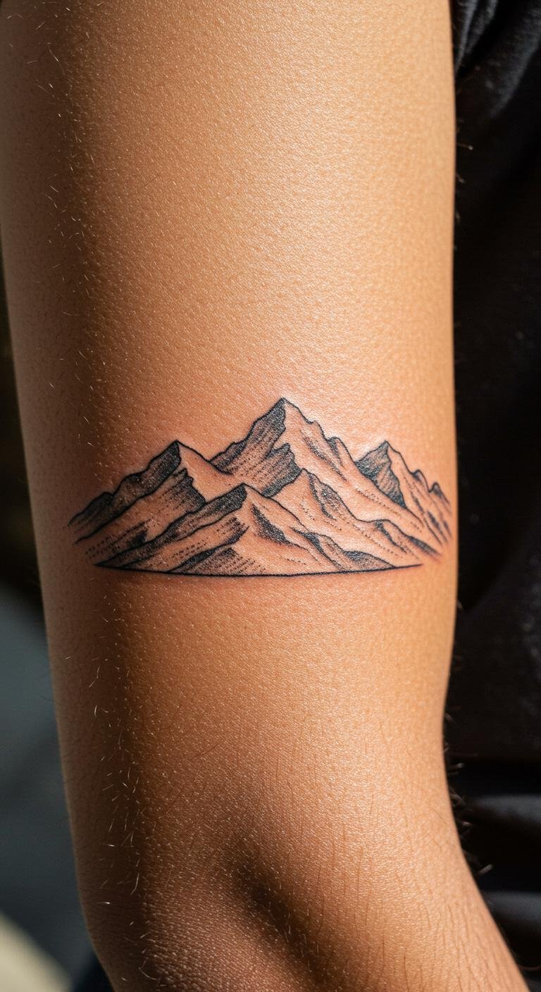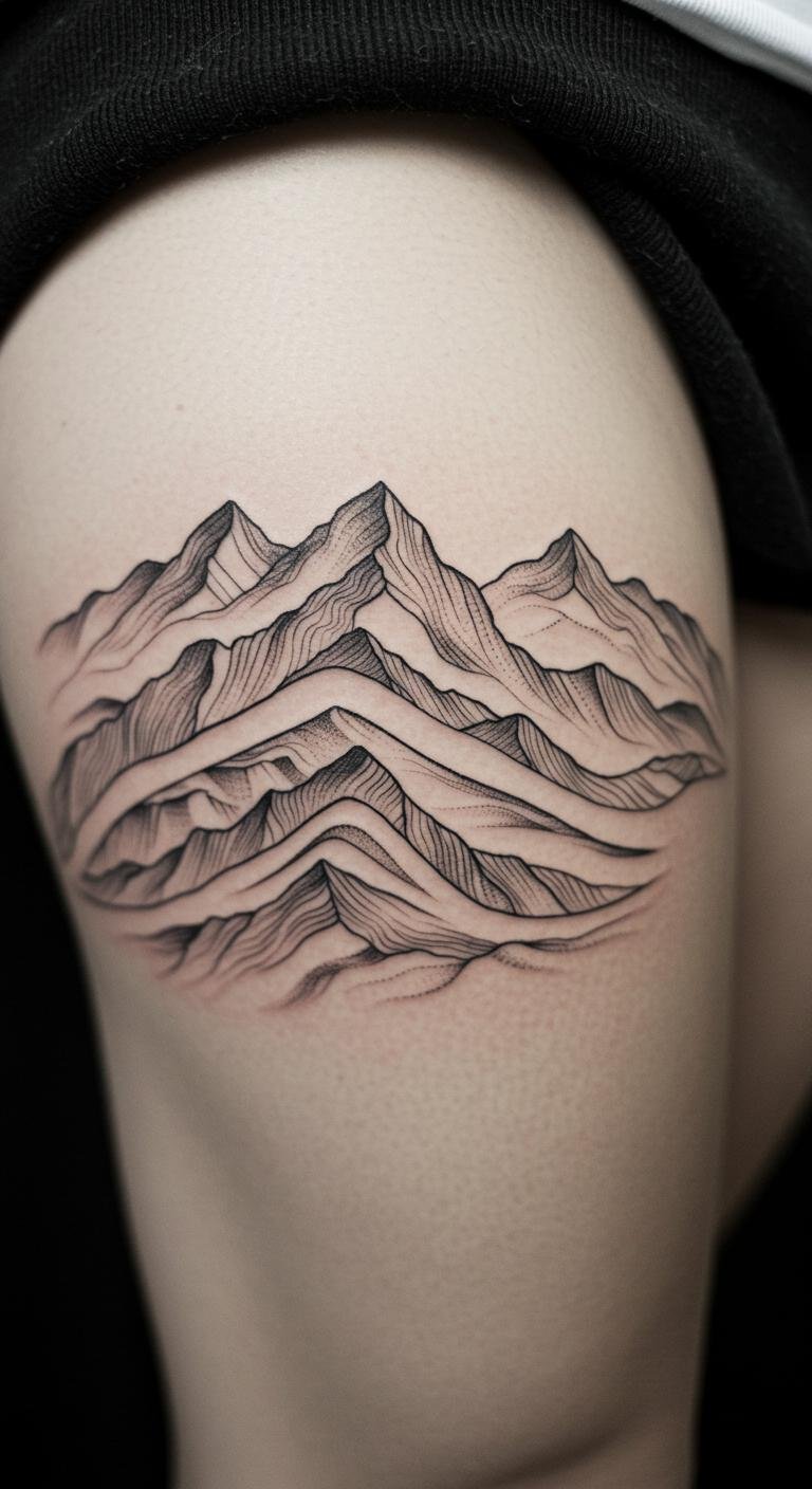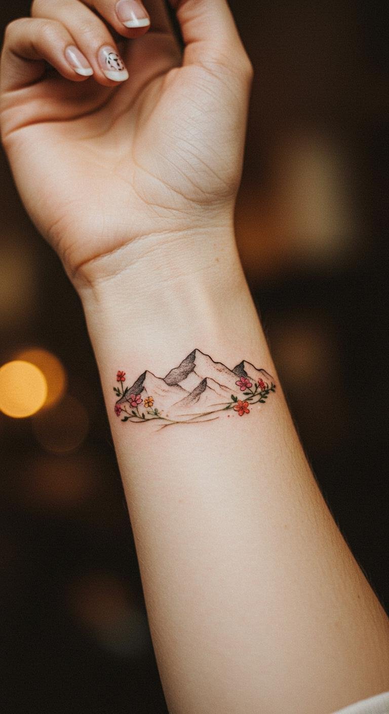 Fine-line mountains keep things understated and elegant. These use thin lines for a clean look. Sketch ideas with a fine-tip pen on paper. Try DIY with henna kits for temporary versions, costing about $10. Position on your inner forearm for discreet wear. Fine lines fade less with care. Look for artists who charge by the hour, often starting at $80. Add a small element like a bird for meaning. It’s perfect for daily wear. Experiment at home before committing.