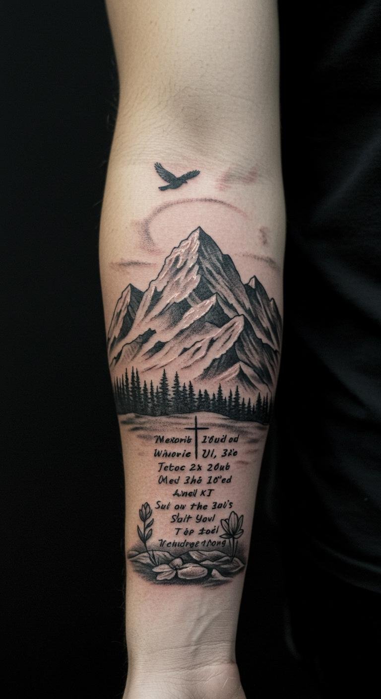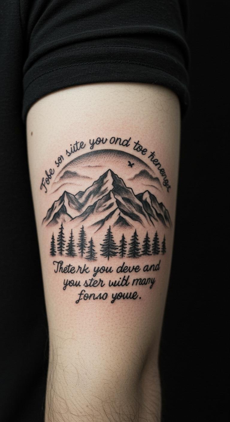 Adding quotes to mountains gives words extra power. Choose phrases about strength etched beside peaks. Write ideas in a notebook first. Use free font apps to mock up your quote. Apply temporary stickers for practice, costing pennies. Place on your forearm for easy reading. Quote pairings make it meaningful. Local artists might offer quote add-ons for $40 extra. It turns ink into a mantra. Keep it straightforward.