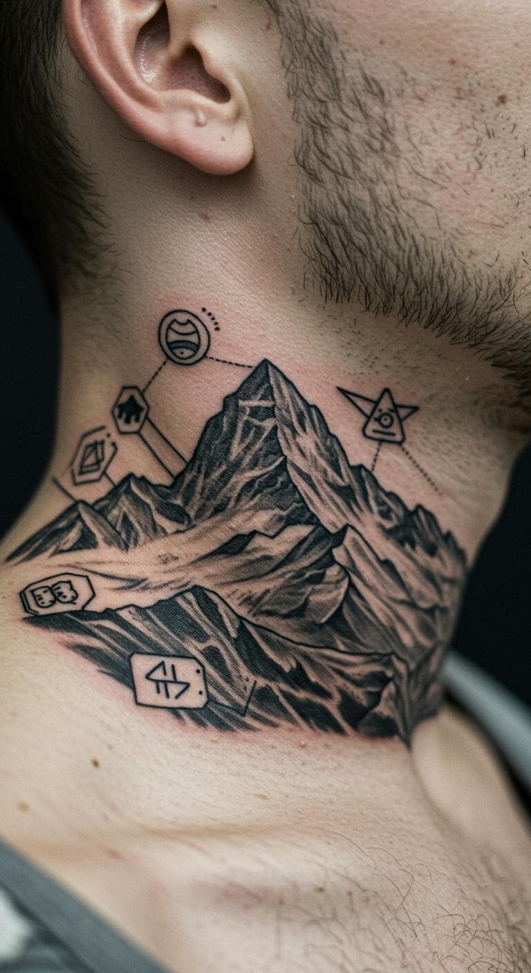 Celestial tattoos pair stars with mountains for a night sky feel. Add dots around summits. Sketch constellations at home. Use star sticker kits for testing. Star pairings add wonder. Look for night-themed deals at $70. It connects to the cosmos. Keep it simple yet striking.