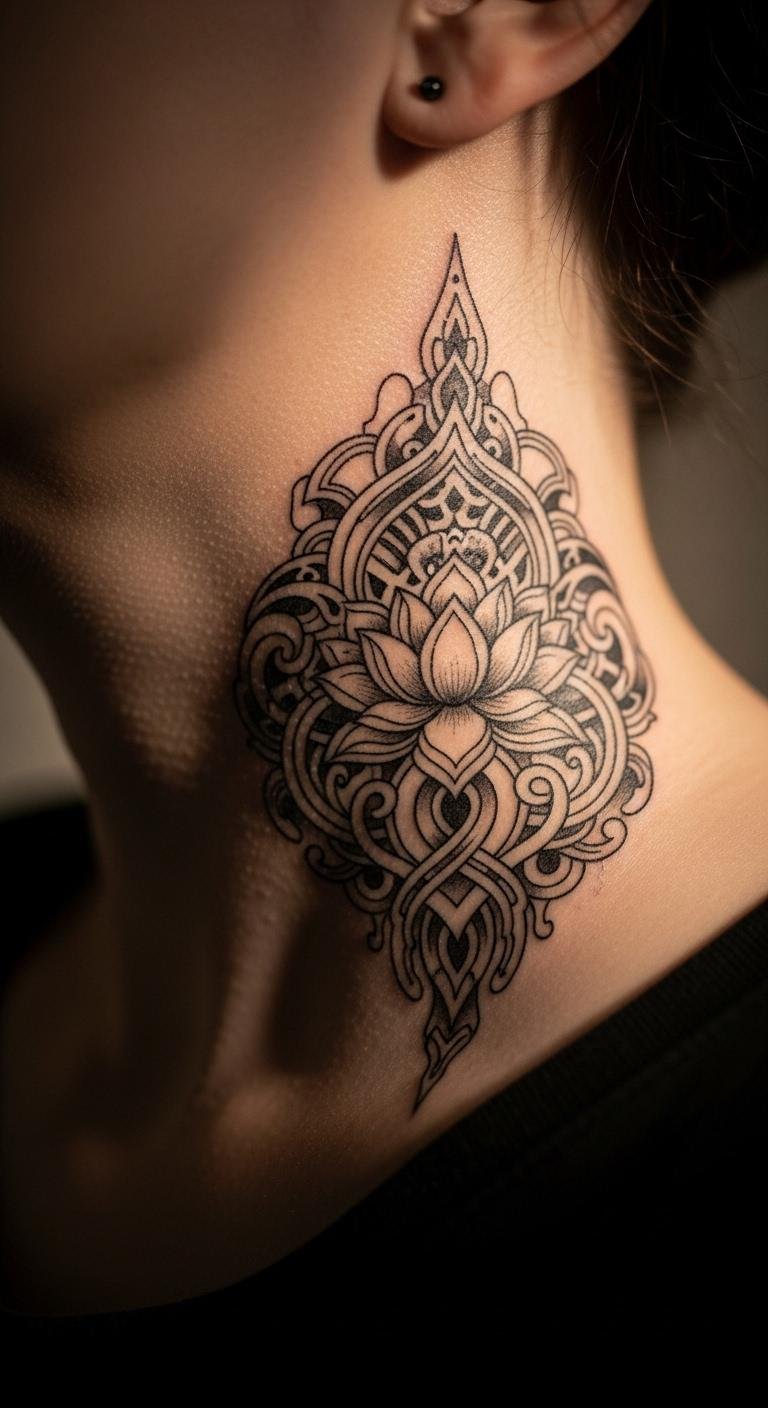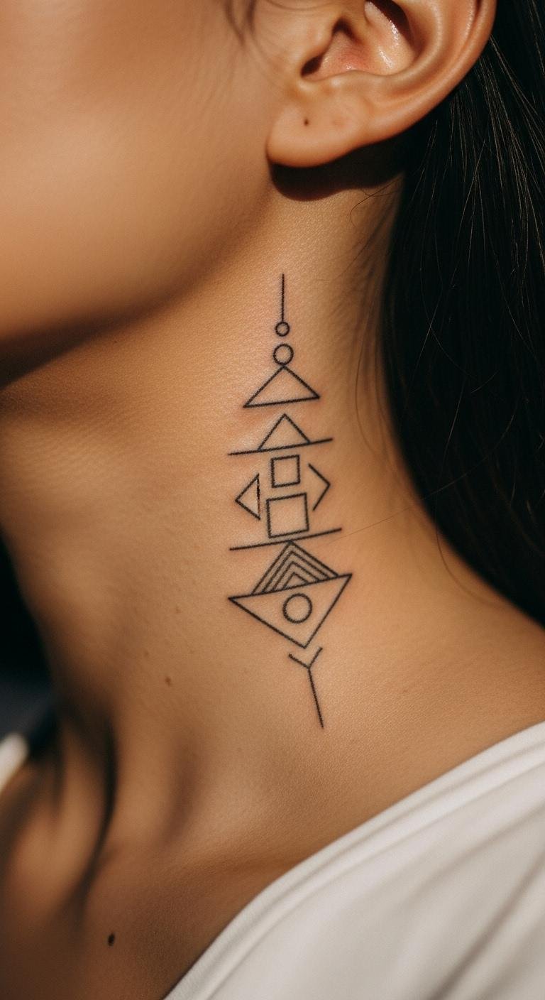 Think about starting with clean lines and shapes. A geometric neck tattoo uses basic forms like triangles or circles. This keeps things understated yet striking. Pick a design that means something to you, such as a symbol of balance.
