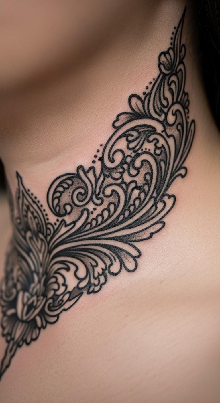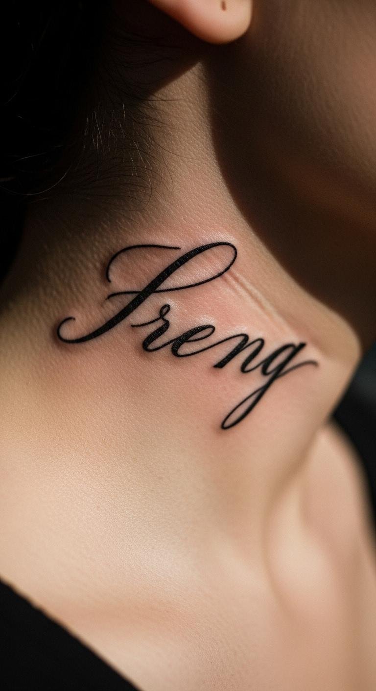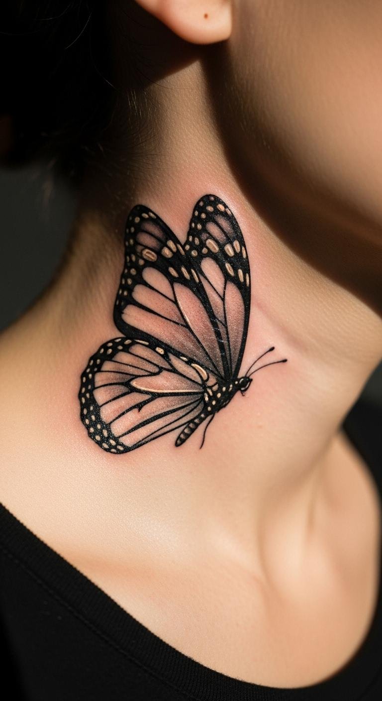 A butterfly neck tattoo represents change and beauty. Go for a small, detailed wing design on the side. It feels light and feminine.