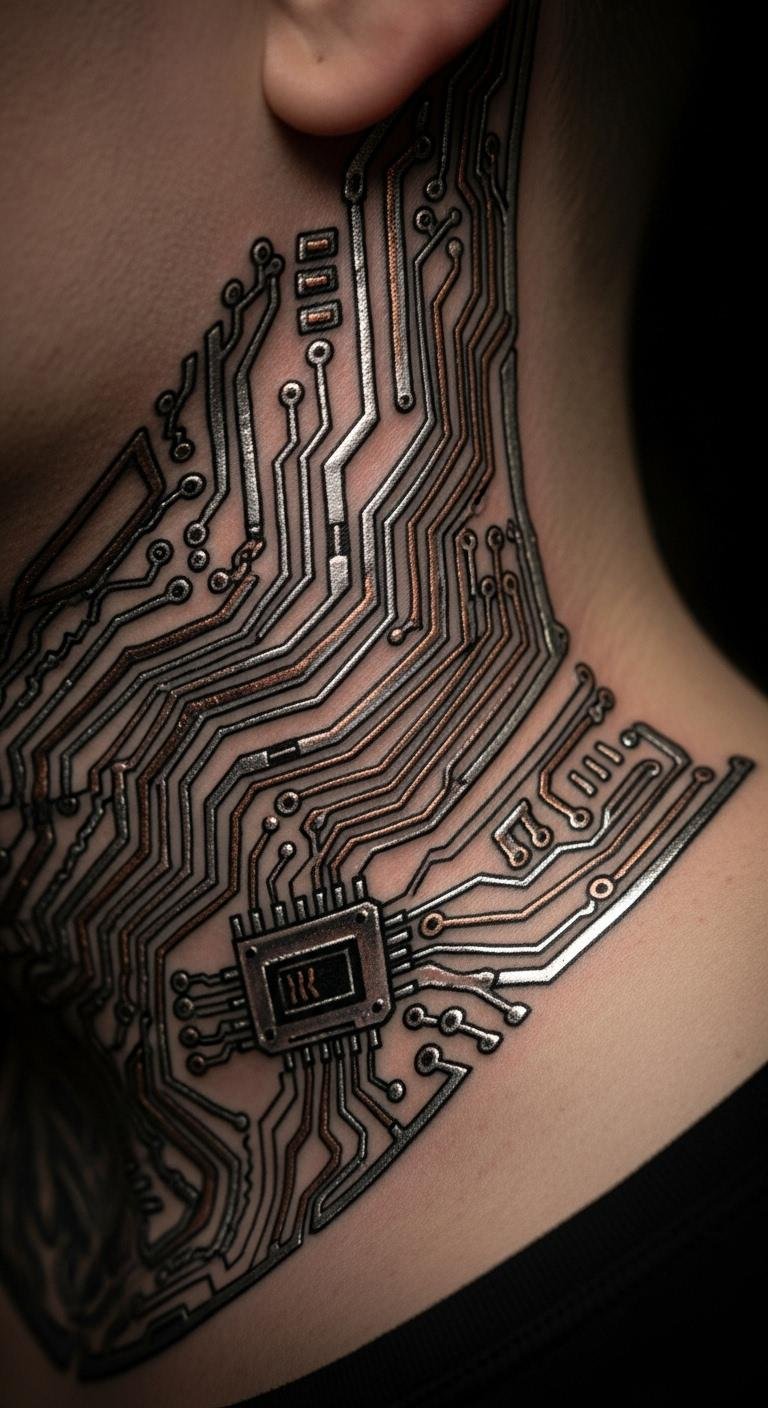 This tattoo makes your style current and exciting, blending art with innovation in a simple way.