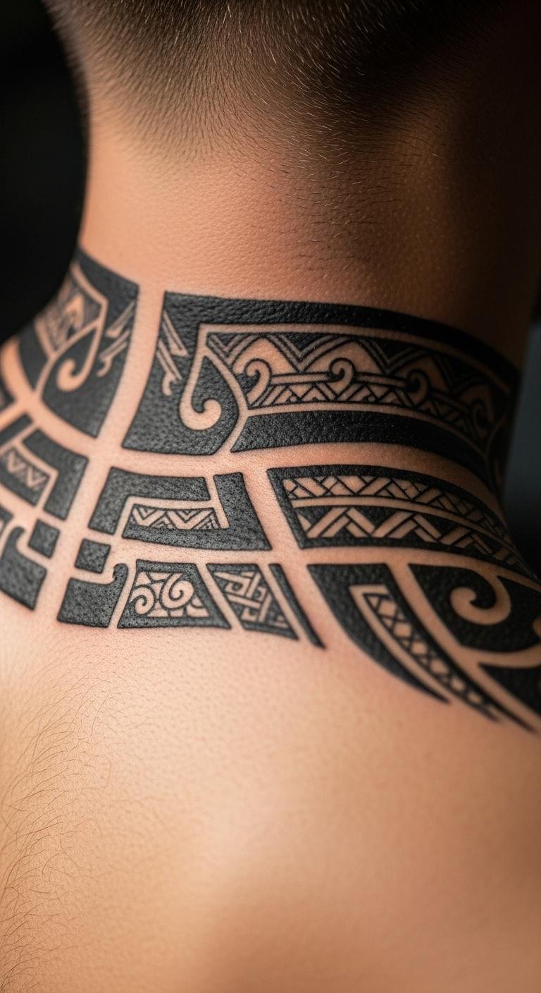 Tribal patterns connect to heritage and strength. Select simple bands or shapes that flow with your neck. They offer a timeless appeal.