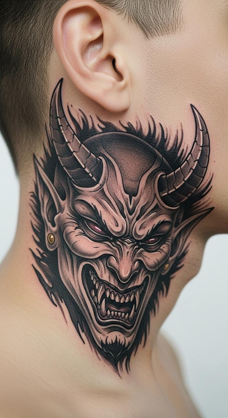 Demon faces add edge. Draw faces first. Free practice. Front placement works. Simple ink saves. After, use basics. The look is intense.
