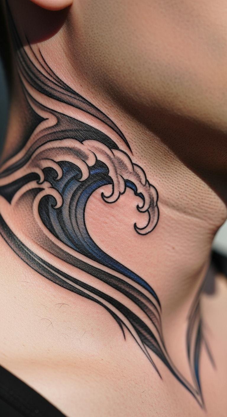 Waves bring motion to your neck. Draw curves on paper to start. Free and easy with a pencil. Position on the side for impact. Simple abstracts save money. Find deals at walk-in parlors. Care with daily lotion. The design adds a fresh feel.