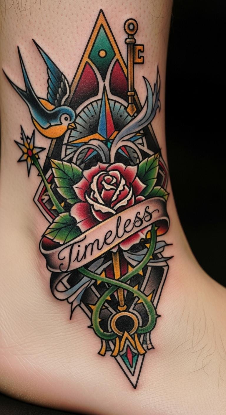 Motifs that mix old and new stand out. Start with symbols like anchors, then update with fresh colors. Sketch on paper using basic supplies. Find free motif ideas online and adapt them. Include a modern element, like a tech-inspired line, to make it personal. This keeps costs down. Test combinations on fabric scraps. The blend creates a tattoo that’s timeless yet current, enhancing your style easily.