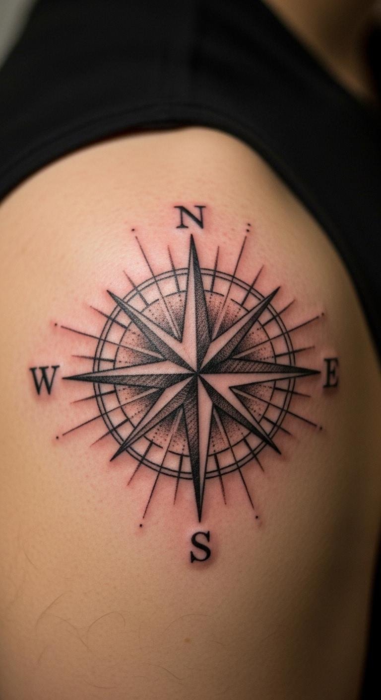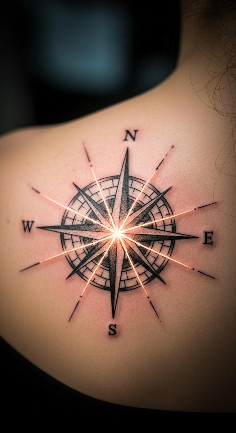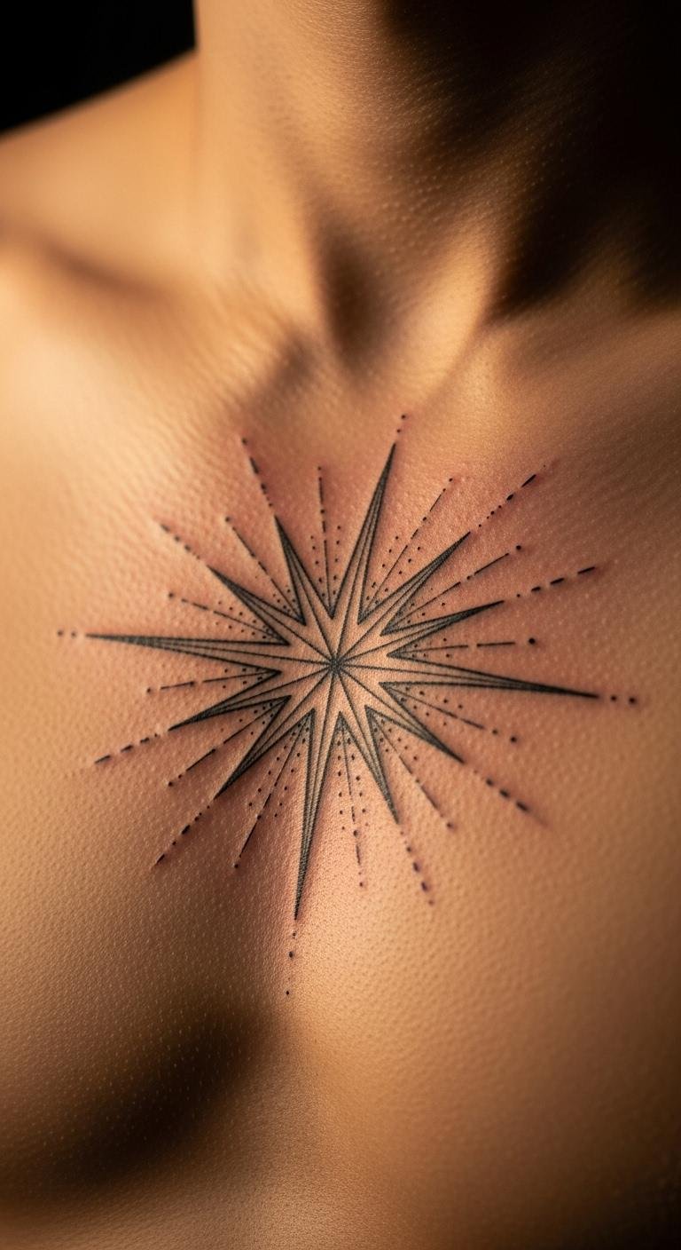 Make a spiritual North Star with rays around it. It points to inner peace. Draw rays from the center. Position on your chest for heart vibes. Artists do this for $60. Use rulers for straight lines at home. Keep it symmetric. This tattoo guides your spirit. Find free tools online. Go simple with ink. Practice on a mirror.