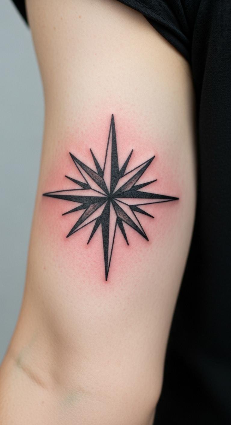 Bold lines in a North Star show resilience. It stands for tough times. Sketch thick stars. Put it on your bicep. Shops charge around $50. Use markers for outlines. Add extra points. This design builds confidence. Try paper first. Keep it basic.