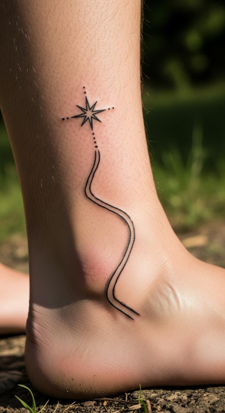 Delicate North Star on your ankle steps with you. It guides walks. Sketch light lines. Position low. Shops offer for $50. Use tape for fit. Add small twists. This ink moves you. Practice drawing.
