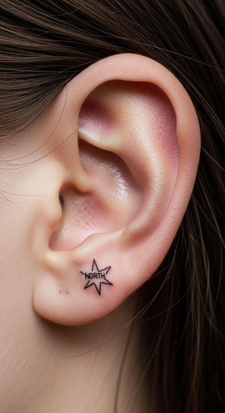 A small North Star behind your ear is sneaky cool. It whispers guidance. Draw it tiny. Hide it well. Shops do for $45. Use a mirror for spot. Add a dot. This ink fits quick. Test with pen.