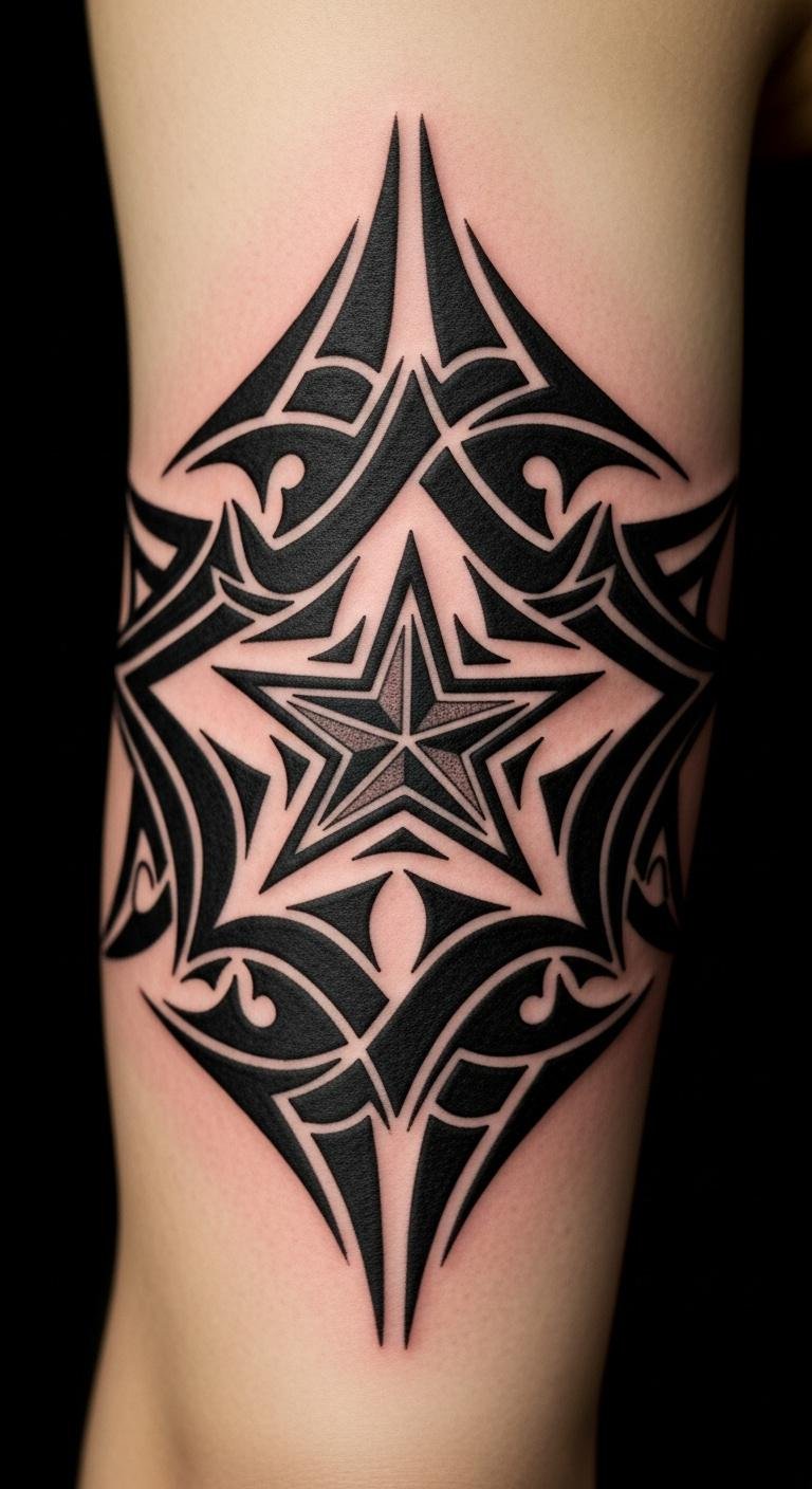 Go for a tribal twist on the North Star. It ties into cultural roots and strength. Sketch patterns with free apps on your phone. Use curved lines around the star for flair. Put it on your bicep for easy viewing. A budget shop might do this for $80. Practice with markers on paper first. Blend in dots or waves for a personal touch. This ink shows your heritage story. Grab household items like tape to outline shapes. Stick to black outlines to cut costs. Try a henna version with store-bought cones. It fades in days and helps you decide. Make it a quick project for the weekend.