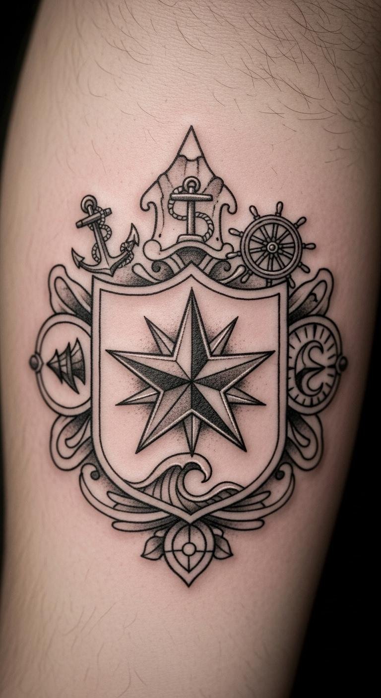 Add a North Star to a family crest. It honors roots. Sketch your crest. Put on arm. Charge around $90. Use family photos. Blend stars. This ink ties bonds. Draw it simply.