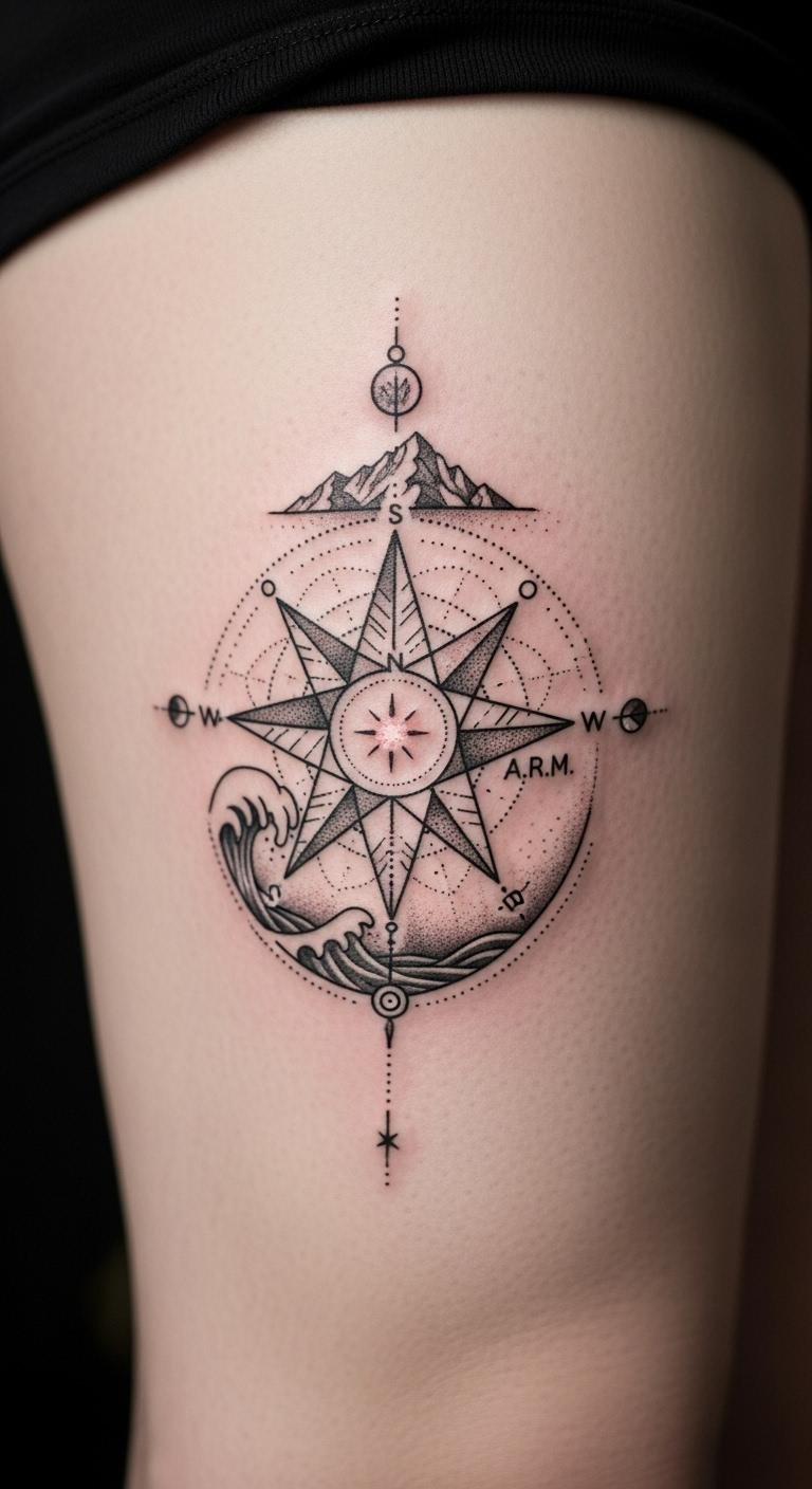 Pair a North Star with a compass design. It echoes old sailor vibes for safe travels. Draw it out at home with a ruler and pencil. Focus on four points for the compass. Place it on your shoulder for a bold look. Find an affordable artist online for around $100. Use string and pins to map the design on your skin before going in. Add waves or arrows for fun. This setup guides you through tough days. Opt for basic tools like a sharpie for tracing. Keep colors simple to save money. A DIY stamp from craft supplies lets you test it. Wear it as a daily motivator. Choose a size that fits your style without extra cost.