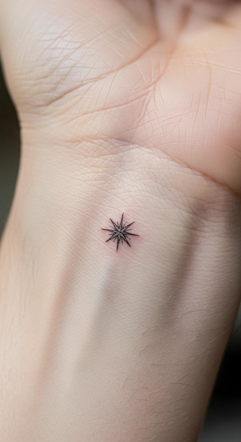 A minimalist North Star on your wrist keeps things subtle. It acts as a quiet guide. Draw a tiny star on paper with a fine-tip pen. Position it where you see it often. Local spots offer this for under $60. Use a string to measure the spot at home. Add a small line for extra meaning. This design fits busy schedules. Opt for freehand drawing with everyday markers. Choose black ink for simplicity. Test with a washable stamp from supplies. It wears off fast and costs nothing extra. Make this your affordable daily symbol.