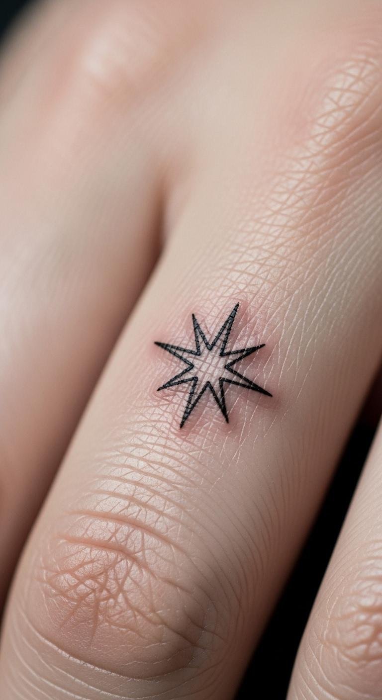 A tiny North Star on your finger offers discreet style. It reminds you of your path. Sketch it with a thin marker. Choose a spot near your knuckle. Shops do this for about $40. Wrap string around your finger to plan. Keep it plain for elegance. This ink fits everyday wear. Use free apps to design it. Go with black for affordability. Test with a ring drawn on. It washes off easy. Make it a simple choice.