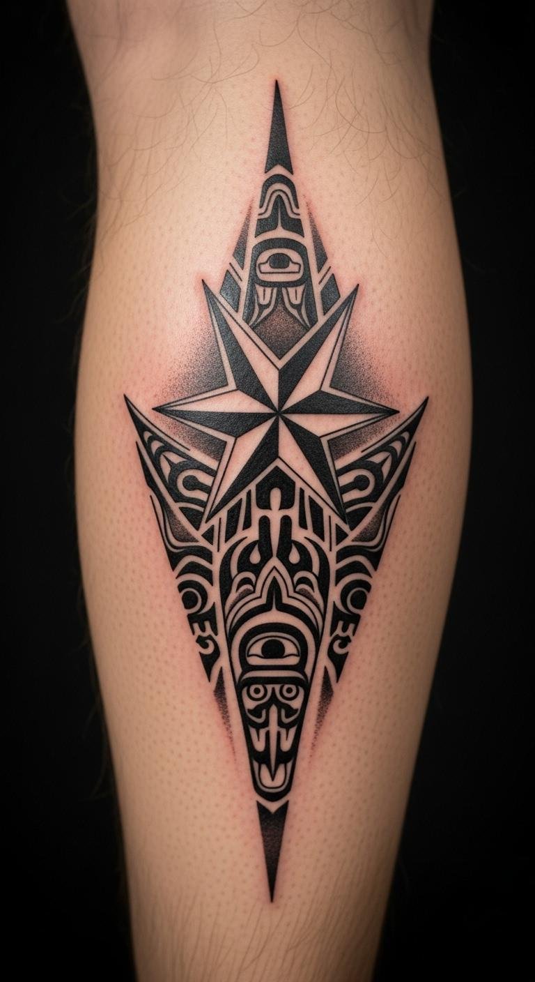 Draw from Inuit themes for your North Star. It connects to ancient stories. Copy simple patterns from books. Place it on your calf for coverage. Expect $70 at a shop. Use string to layout designs. Blend stars with waves. This ink reflects cultural ties. Try freehand with household items. Opt for black lines. Sketch on paper to start.