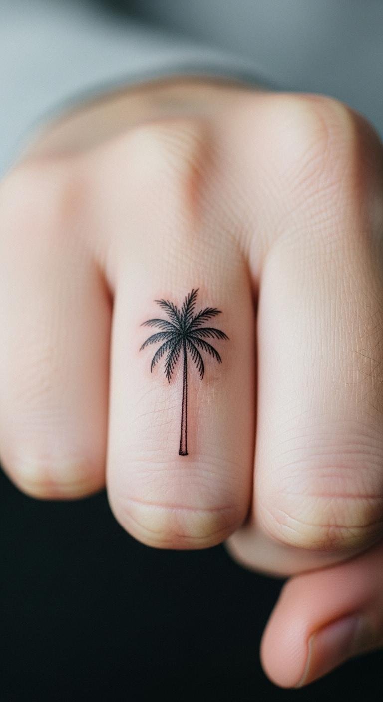 A palm tree on the finger is petite and precise. Imagine a mini version there. Draw tiny ones. For DIY, use ring tattoos. Finger heals fast. Costs under $40. Keep hands safe. This design is discreet. Add small extras. Test with markers.