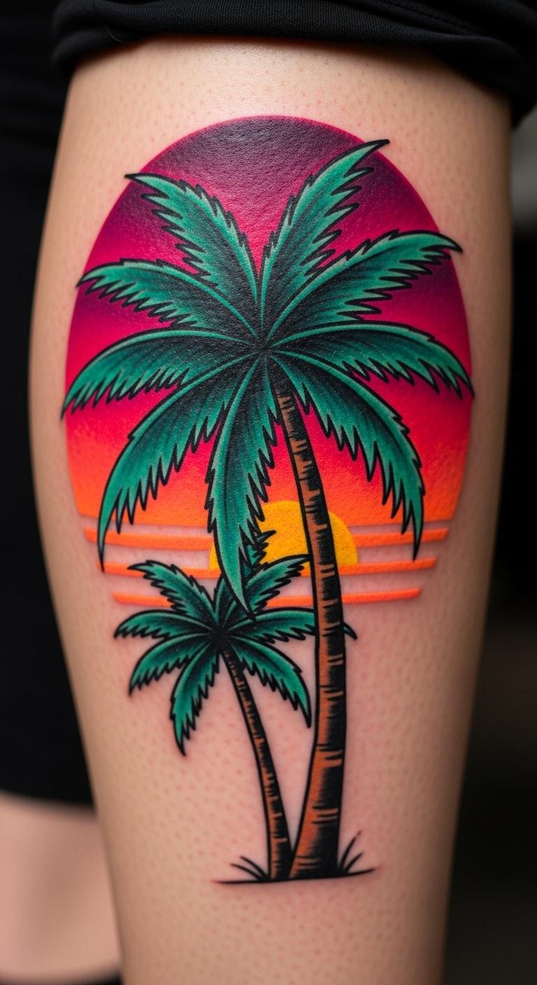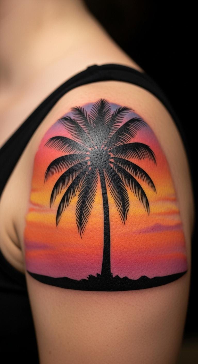 Sunset Gradient Palm Tree Tattoo