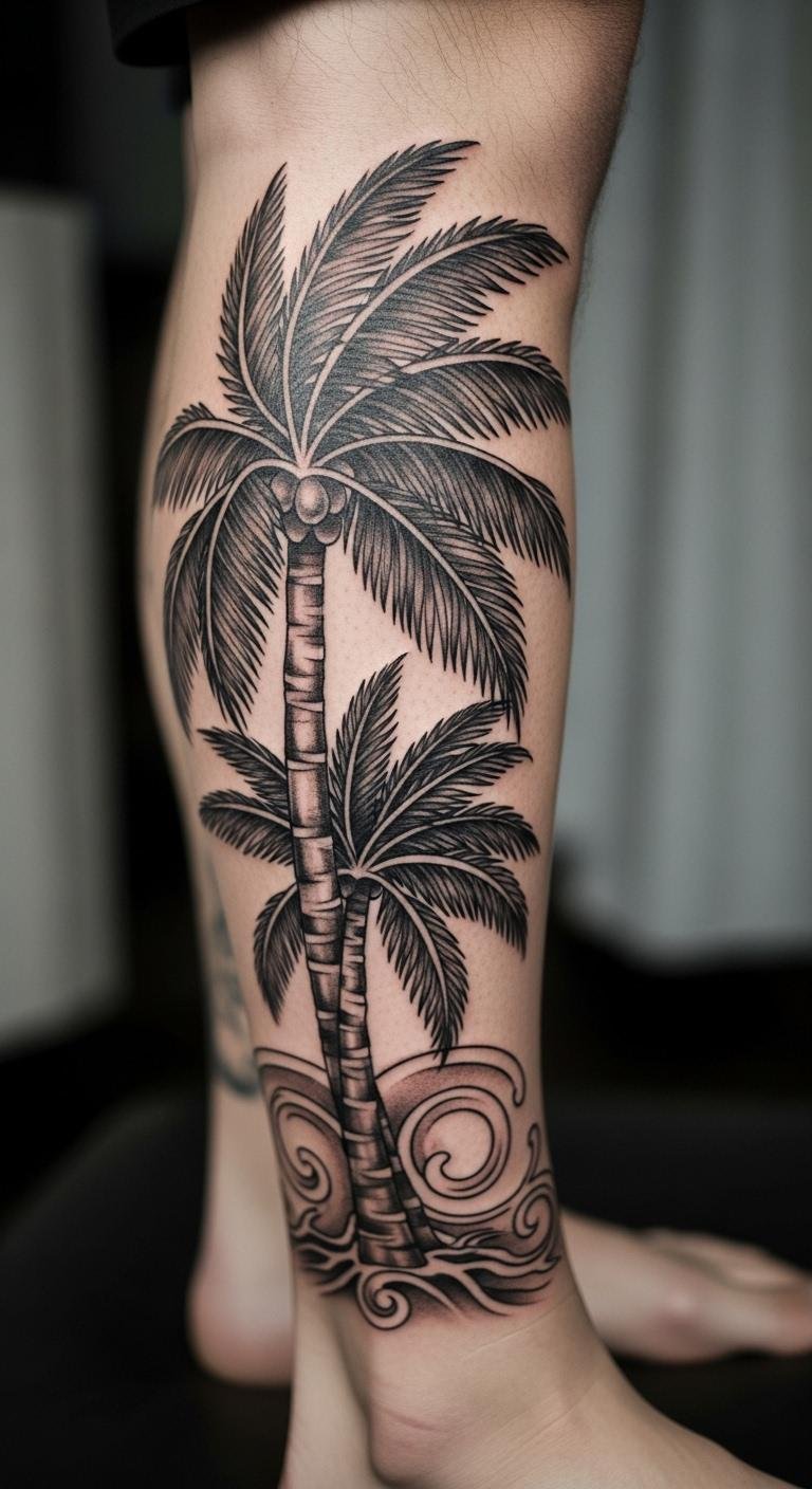 Leg Tattoo with Palm Trees