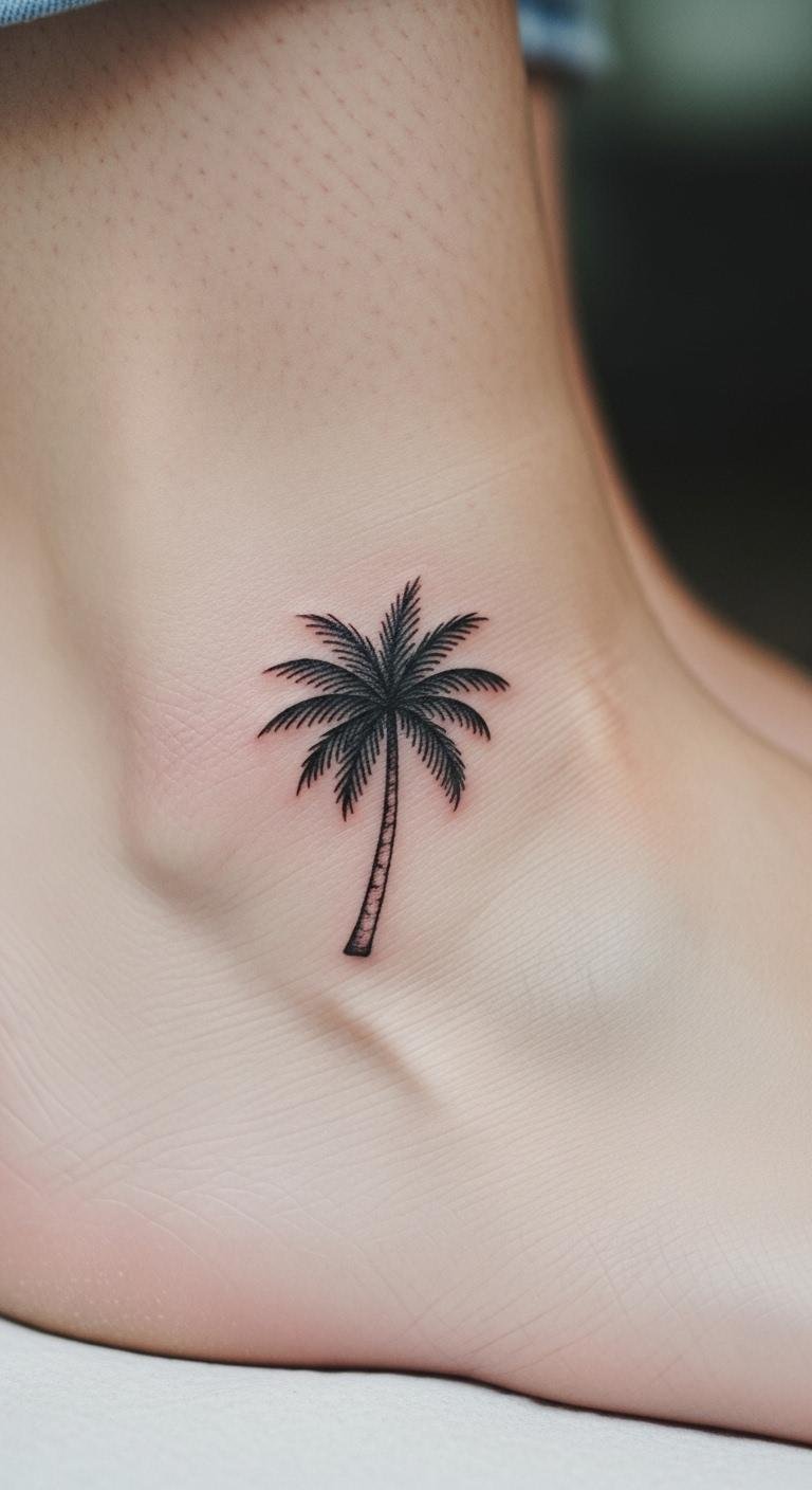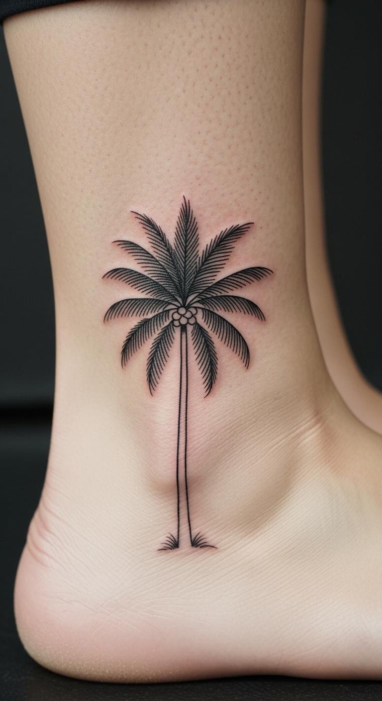 Small Ankle Palm Tree Tattoo