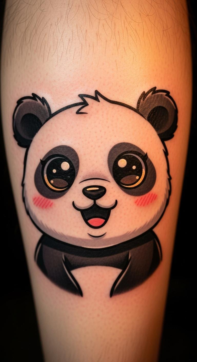 Bold kawaii panda tattoos amp up the cuteness with colors. Think a panda with big cheeks and fun shades. Great for energetic people. Color your sketch boldly. Free kawaii generators exist. Put it on your thigh for fun. Add accents wisely. This is vibrant yet cheap. Try colored tapes for preview. Focus on the cheeks’ roundness. You’ll have a tattoo that’s joyful and easy.