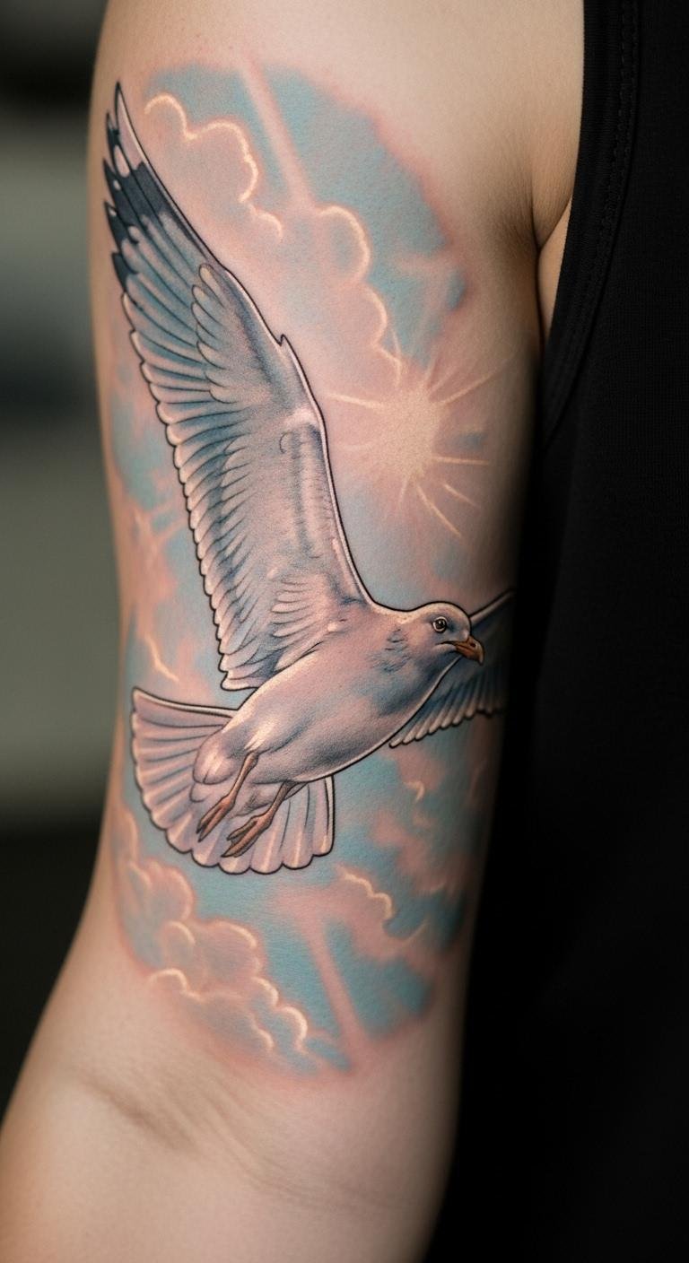 Seagulls fly free. Ink on your chest. Draw birds simply. Add clouds. Find affordable ink. Heal outdoors. Use sky sketches. Budget-friendly flight.