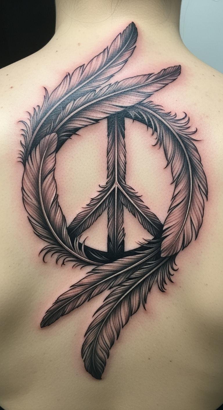 A feathered peace sign on your back incorporates light feathers for a flowing effect. Picture soft lines extending from the core for grace. Sketch feather shapes on paper using free guides. Temporary airbrush kits let you test affordably. Place it on the back for a larger canvas that’s not always seen. Budget versions could be $150-250. Add feathers with DIY stencils from paper cutouts. This design looks great under loose shirts, symbolizing freedom. Practice with charcoal sketches on your body. Keep the flow natural for harmony.