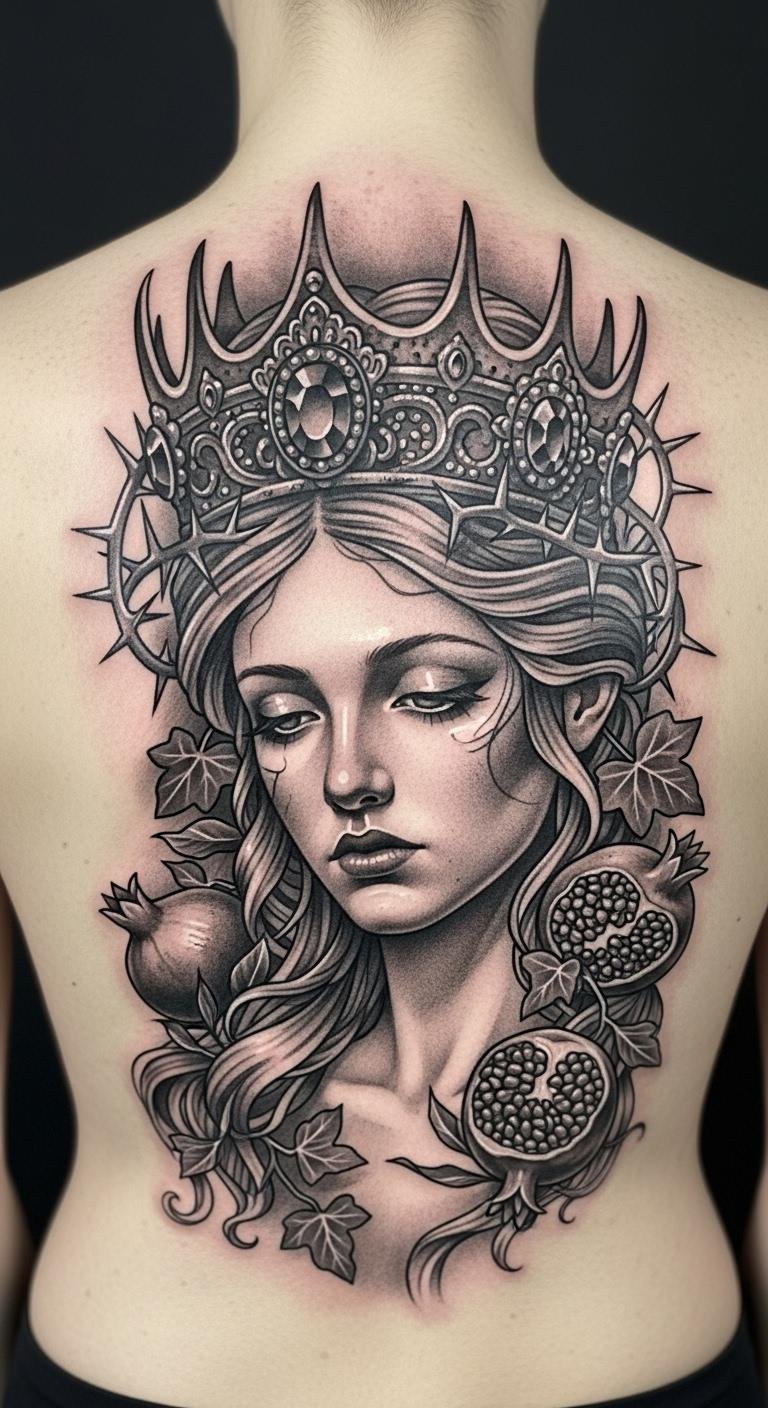 The crown highlights Persephone’s rule in the underworld. See it as a sign of power and grace. Sketch a basic crown shape quickly. Use free templates online for ideas. Add thorns using simple tools. This keeps things affordable. Place it on visible areas like the neck. Try drawing with everyday pens. Customize with gems from craft stores. Go bold but simple to save money. Practice on scrap paper. This design empowers your story. Combine it with other motifs easily. Make it a weekend project. Focus on strength in your choices.