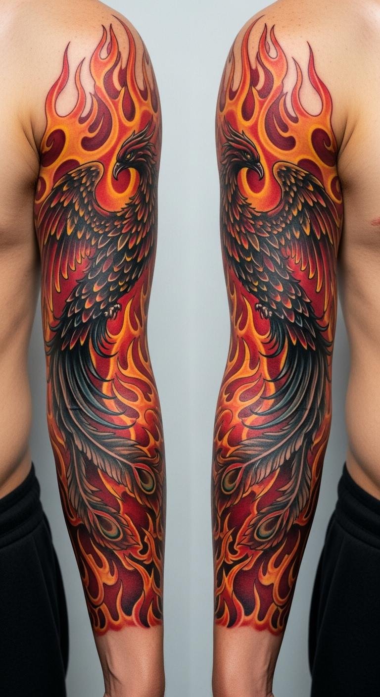 See a Phoenix sleeve telling your life story down your arm, layer by layer. The details make it epic. Start with a notebook and colored pens to plan—it’s free. Practice with henna kits from the drugstore for a temporary version. Find sleeve specialists with group rates. Weave in dates or names for meaning. Building a sleeve over time keeps costs down. This tattoo chronicles your journey and sparks conversation.
