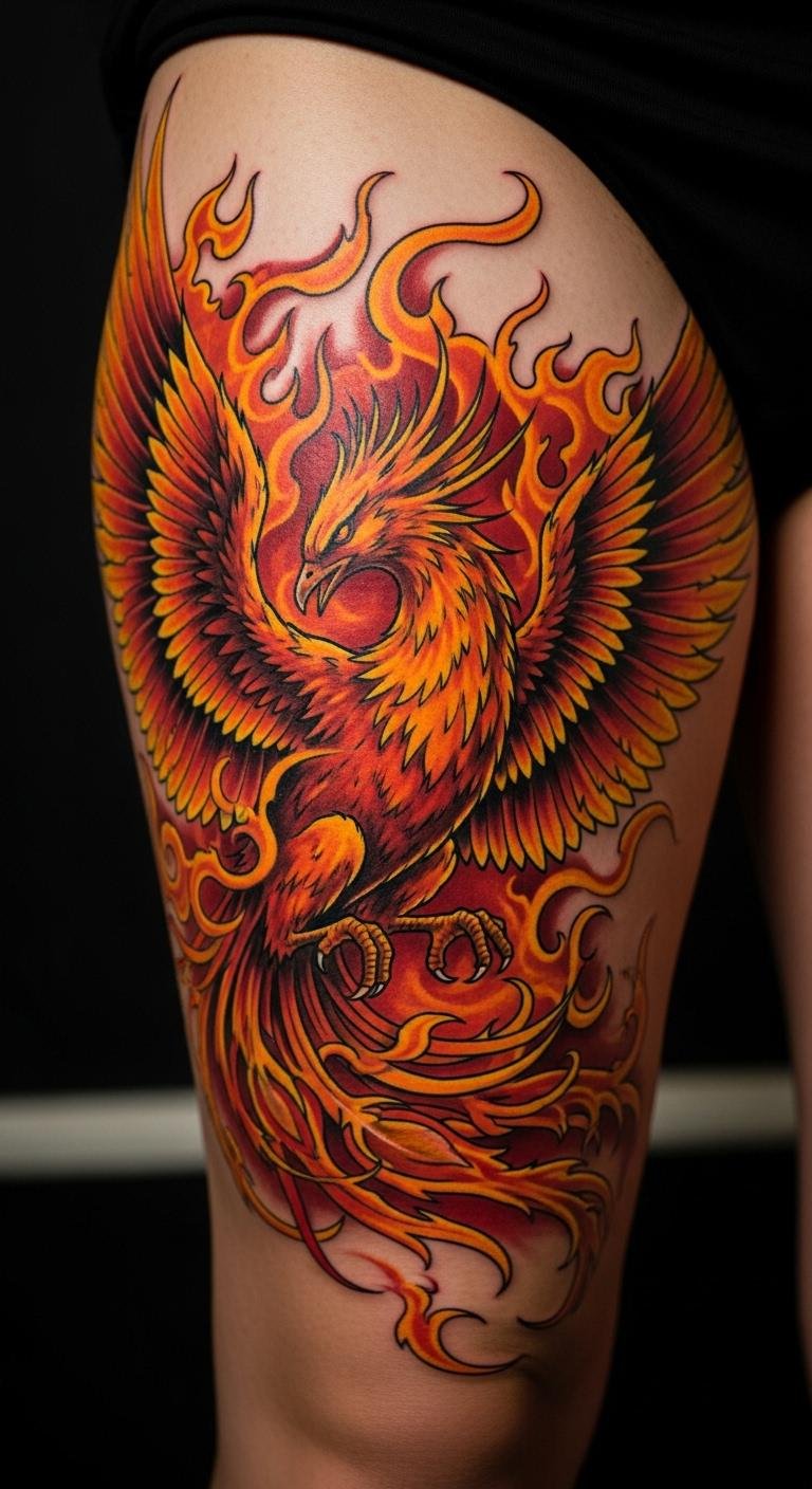 See a mighty Phoenix on your thigh, embodying raw power. The lines command attention. Sketch on your leg with markers. Try thigh wraps for previews. Seek power-themed artists with deals. Add strength symbols for depth. This design icons your journey cheaply. It powers through challenges.