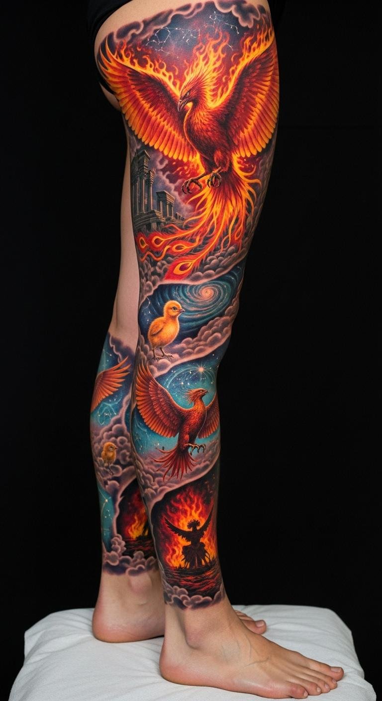 Think of a Phoenix epic on your leg, unfolding a story from top to bottom. The tale engages. Plan with storyboards on paper. Try leg wraps for story checks. Look for epic artists with installments. Weave in your chapters for meaning. This tattoo tells tales without high prices. It chronicles your epic.