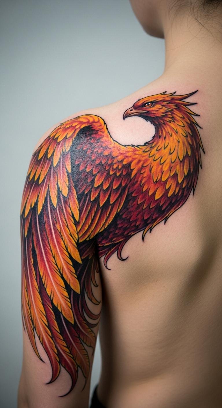 Envision a Phoenix on your shoulder blade, spreading wings as a guard. The pose defends. Sketch on your shoulder simply. Use blade stickers for protection feel. Find guard-themed artists affordably. Add a shield for your narrative. This tattoo protects daily, keeping costs easy. It watches over you.