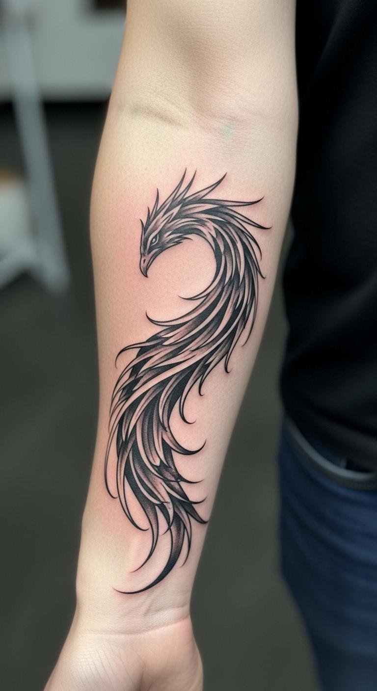 Envision a minimal Phoenix on your wrist, just clean lines and power. Less is more here. Sketch with a single pen on paper to start. Use basic sticker tattoos for a quick test. Opt for line-work artists with low rates. Keep it plain for easy customization. Simple tattoos heal fast and cost little. This one serves as a quiet daily motivator.