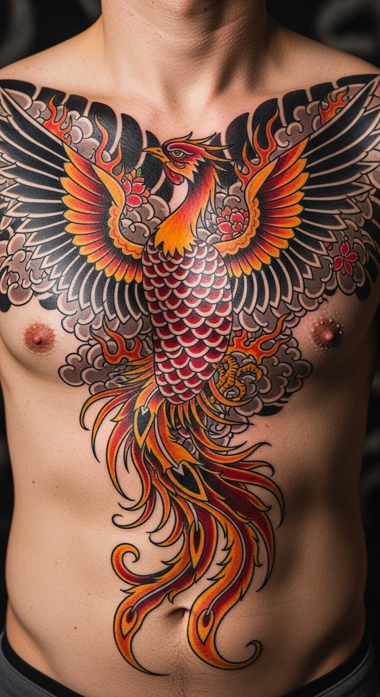 Envision a traditional Phoenix on your chest, drawing from ancient stories of rising again. The detailed beast feels historic. Use free online templates to trace your version at home. Make a temporary transfer with printer paper and ink—it’s cheap and easy. Opt for artists who do walk-in sessions to save money. Include cultural symbols, like a sun, for depth. Traditional ink lasts, but start with smaller pieces. This design honors roots and motivates growth every day.