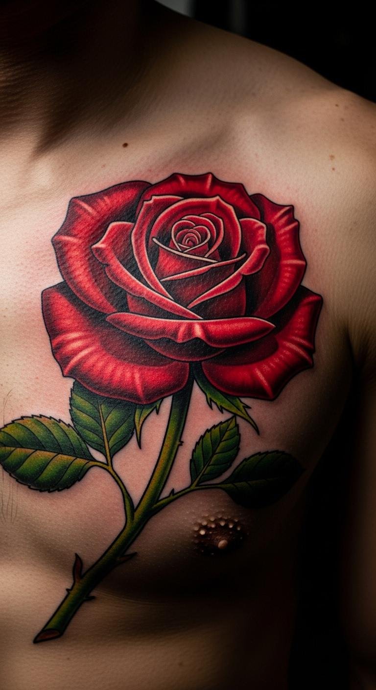 Bold Chest Red Rose