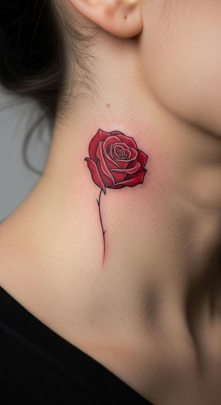 Keep it ultra-simple. A single petal red rose is elegant. Neck placement adds mystery. Quick sketches work. Budget: Very low, under $90. Real DIY: Petal on paper. Easy care. Subtle charm.
