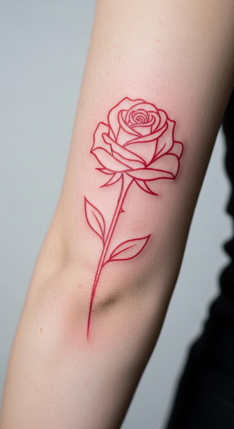 Minimalist Red Rose Tattoo