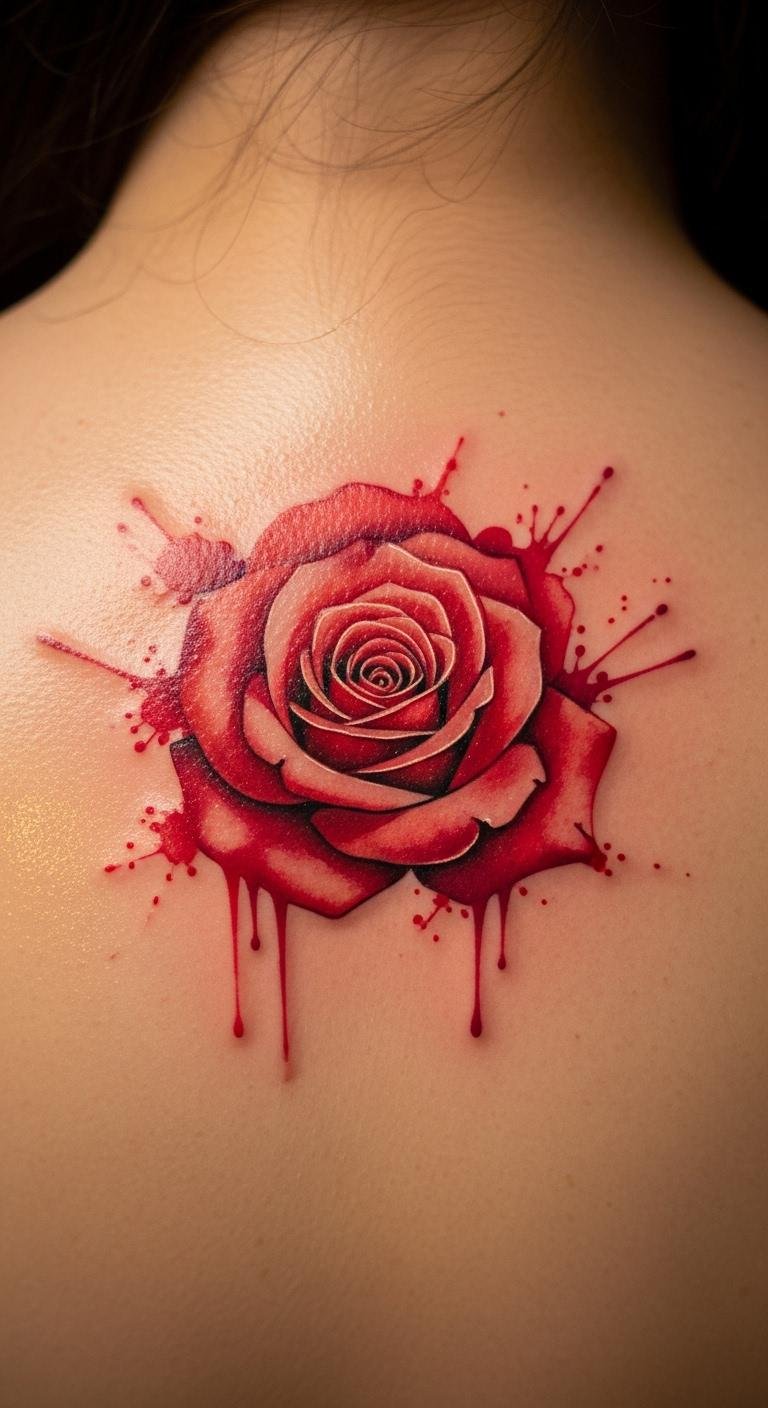 Get an artistic vibe. A watercolor red rose uses blended inks for a painted effect. It looks fresh and modern. Try the back for a larger canvas. Online tutorials guide your choices. Save by opting for fewer colors. This style might cost $180. Real DIY: Experiment with watercolors on paper to visualize. Heal with drugstore supplies. Add it to existing tattoos for variety. Quick sessions make it feasible. It’s perfect for a creative touch on a budget.