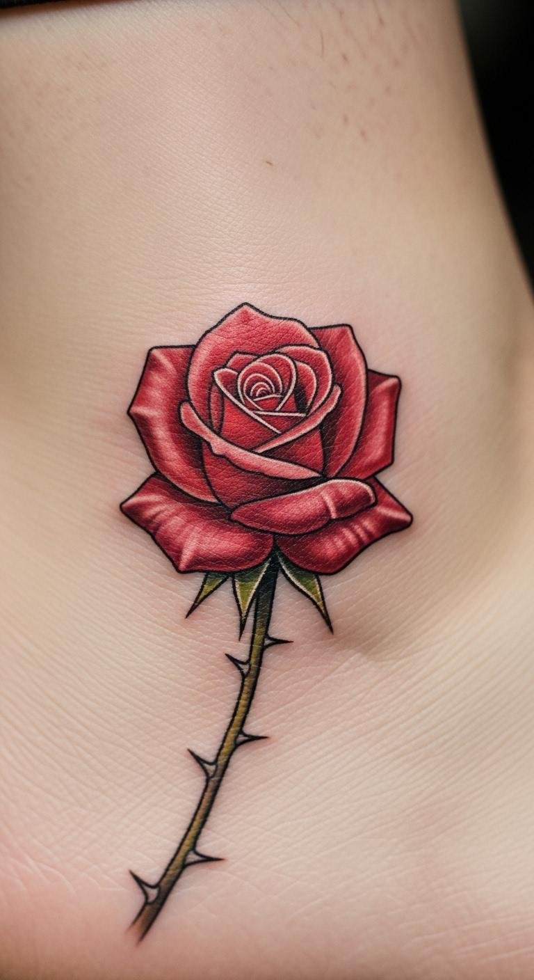 Opt for something discreet. A small red rose on the ankle is subtle and cute. It fits daily wear easily. Sketch it with a pen on your skin first. Look for walk-in deals to save money. Under $100 is possible. Real DIY: Test with ankle bracelets to see the spot. Use band-aids for basic care. Pair with socks for protection. Short, painless sessions suit beginners. It’s a simple way to start inking affordably.