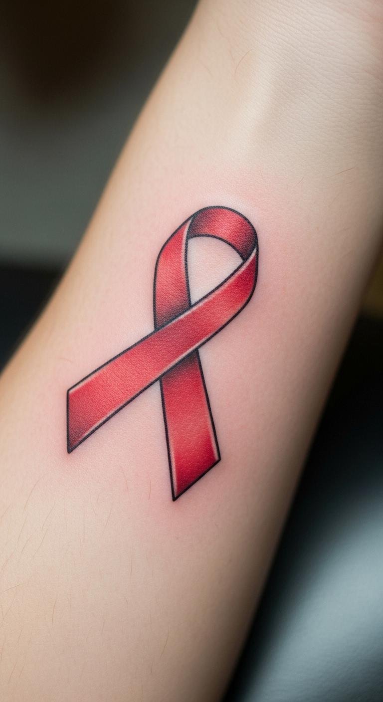 A red ribbon tattoo highlights AIDS awareness and reflects courage in tough times. Pick this if you aim for something eye-catching yet meaningful. Begin by noting colors that matter to you—red stands out. Use affordable tools like a sketch pad to doodle ideas before committing. Free online generators help place it virtually on your arm. Red ink lasts longer with proper care, so choose a spot that’s easy to protect. Add a personal twist, like a date, by writing it in simple script. Practice drawing the ribbon at home with pens for a DIY feel. This design works well for visible areas to share your story. Keep it simple to save on artist fees. It’s a great way to show strength without complexity. Get started by talking to friends about their tattoos for real advice.