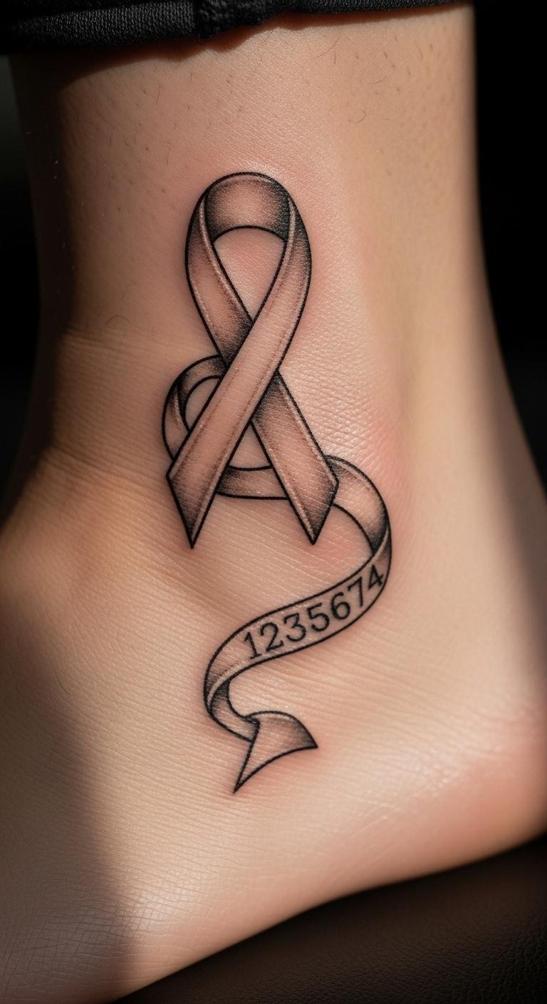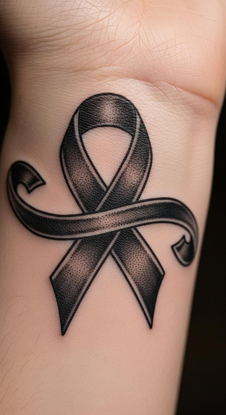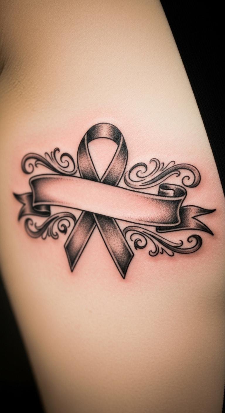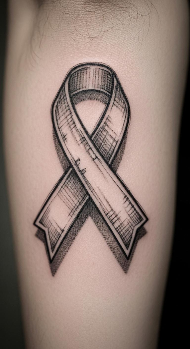 Forearm ribbon tattoo displays resilience where it counts. Choose this for a prominent spot. Begin by measuring your arm with ribbon. Apps help visualize clearly. Forearm placement boosts impact affordably. Customize with simple additions. Use templates for home practice. This option shows off strength. Go for clean lines to save. It’s great for expression. Start planning now.